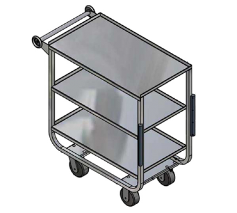 Utility Cart, three shelves, 500 lbs per shelf, open base, 21" x 33" shelf size, all welded stainless steel construction, 5" plate casters, rolling capacity of 2800lbs, NSF