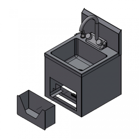 Hand Sink, wall mounted overall dimensions: 14"W x 15"D x 21"H, sink dimensions: 10" wide x 12" front-to-back x 6" deep, stainless steel backsplash, gooseneck faucet, removable towel drawer/dispenser, hand soap dispenser, 1-1/2" drain basket included, includes (1) Z-clip for wall mount, all welded stainless steel construction, NSF