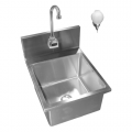 Hand Sink, electric eye activated faucet, 18"W x 15"D OA, 10" x 14" x 6" deep bowl, foot pedal, includes: gooseneck faucet, basket drain, & soap dispenser, all welded 16/304 stainless steel, NSF