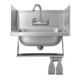 Hand Sink, wall mount with sidesplash & knee valve, 17"L x 15"W, 10"W x 14"L x 5"D bowl dimensions, 4" gooseneck faucet, basket drain, 20 gauge, 9.5" backsplash with (2) sidesplashes, stainless steel, NSF