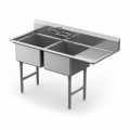 Sink, two compartment, with right-hand 18" drainboard, 20" front-to-back x 16" wide x 12" deep with backsplash, stainless steel legs & adjustable feet, 16/304 stainless steel, NSF (contact factory for price)