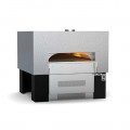 Fire Deck Stone Hearth Oven, two radiant flames on right side with infrared under floor burner and option to burn wood, includes standard stainless mantel, 72" w x 76" d hearth, (60) 8", (40) 10", (25) 12" or (16) 16" pizza or (9) 20" pizza capacity, monolithic cast-ceramic floor & dome create "deep heat sink", heavy duty steel frame base painted black, 12" OD flue collar, ETL-Sanitation, 347,000 BTU