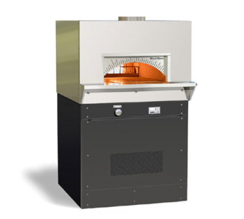 Bistro Stone Hearth Oven, radiant gas flame, 34" w x 27" d hearth, (8) 8", (6) 10", (4) 12" or (2) 16" pizza capacity, monolithic cast-ceramic floor & dome create "deep heat sink", stainless steel upper body and mantel, black PC steel base, 10" OD flue collar, ETL-Sanitation, 80,500 BTU
