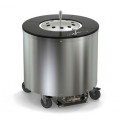 Tandoor, Round, Gas, high temperature 21" ceramic cooking vessel with 12" opening, ventilated lid, burner with pilot safety valve & piezo-electric ignition, manual control, removable drip pan, insulated stainless steel cabinet, includes (10) skewers, (1) bread scraper and (1) bread hook, two swivel & two locking casters, 40,000 BTU, ETL-Sanitation, cETLus, Made in USA