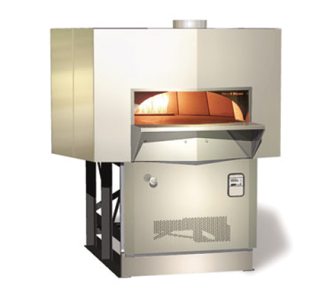 Mt. Baker Stone Hearth Oven, radiant gas flame in dome, 62" diameter hearth, (22) 8", (13) 10", (10) 12" or (8) 16" pizza capacity, monolithic cast-ceramic floor and dome create "deep heat sink", angle iron stand, 10" OD flue collar, 105,000 BTU, cETLus, ETL-Sanitation