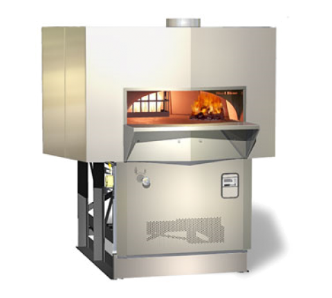 Mt. Baker Stone Hearth Oven, radiant gas flame in dome, with the option to burn wood, 62" diameter hearth, (22) 8", (13) 10", (10) 12" or (8) 16" pizza capacity, monolithic cast-ceramic floor and dome create "deep heat sink", angle iron stand, 10" OD flue collar, 105,000 BTU, cETLus, ETL-Sanitation