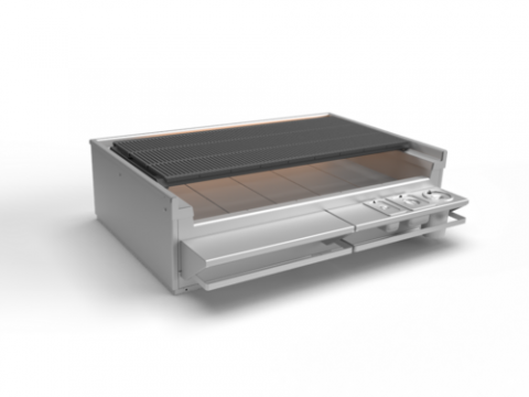 Mt. Saint Helens, Shallow-Box Charbroiler (26 series), Countertop, 54" w x 26" d, (8) 6"x16" cast iron grates on sliding stainless steel frame, "heat sink" style fire box cast from dense high-temperature ceramic, insulated, includes (1) grate tool, (1) particle shovel & (1) T-style floor brush 40", stainless steel exterior, cETLus, ETL-Sanitation