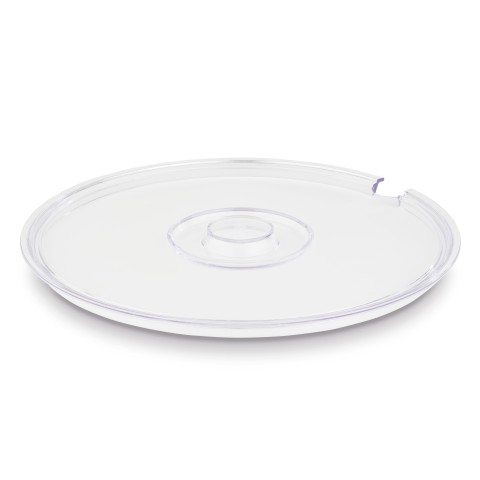 Cover, 9-1/2" dia. x 5/8"H, flat, round, stackable, with spoon notch, dishwasher safe, SAN, clear, Universal, Plus, APS® Germany (32 each per case)
