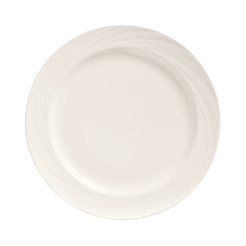 Plate, 6-1/4" dia., round, medium rim, embossed, fully vitrified, porcelain, bright white, Basics Orbis (36 each per case)