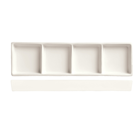 Tray, 10-5/8" x 3-1/4", rectangular, 4-compartment, with (4) 2-1/4 oz. (2-1/4" x 2-3/8") wells, porcelain, ultra bright white, Chef's Selection (12 each per case)