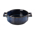 Blue Star Bake Dish, 20 oz., 7-1/2"L x 5-3/4"W x 2-2/8"H, round, with handle, glazed, dishwasher, oven and microwave safe, porcelain, blue (sold by case)