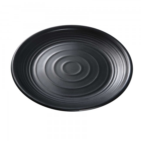 Black Pearl Plate, 10-1/2" dia., round, Asian style, with matting surface, melamine, black (sold by case)