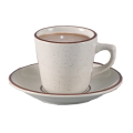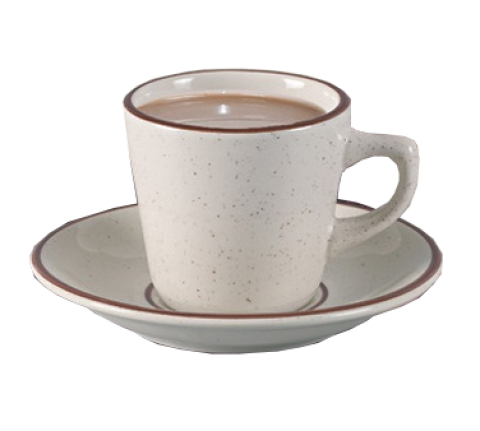 Brown Speckled Saucer Royal, 5-1/2" dia., round, dishwasher, oven and microwave safe, ceramic, brown rim, brown speckled-American white (sold by case)