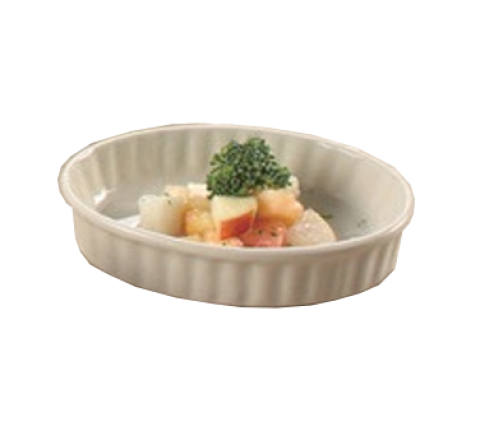 Accessories Crème Brule, 6 oz., 6"L x 4"W x 1-1/4"H, oval, fluted, dishwasher, oven and microwave safe, porcelain, American white (sold by case)