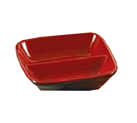 Two-Tone Divided Sauce Dish, 1 oz., 3-1/2"L x 3-1/2"W x 2-1/2"H, 2-compartments, square, dishwasher safe, melamine, black/red (sold by case)