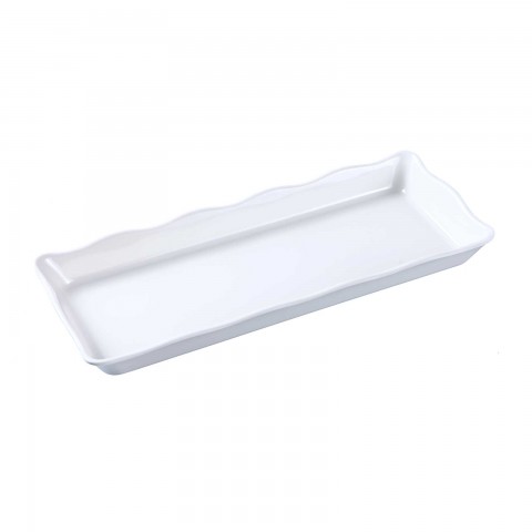 Serving Tray, 14" X 5-1/4" X 1", rectangular, scalloped edge, melamine, white (sold by case)