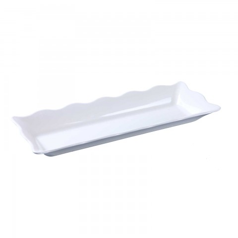 Serving Tray, 17-1/2" X 6-3/4" X 2", rectangular, scalloped edge, melamine, white (sold by case)