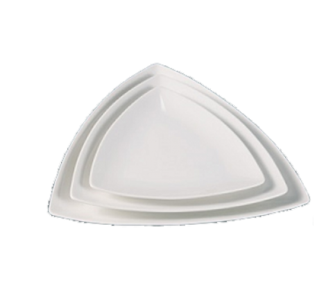 Fuji Plate, 8"L x 8"W, triangular, coupe, dishwasher, oven and microwave safe, porcelain, bone white (sold by case)