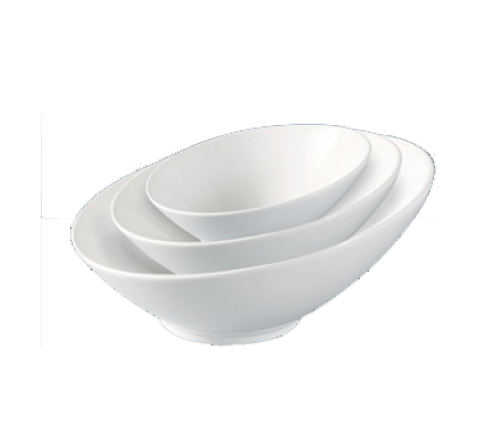 Fuji Sheer Bowl, 20 oz., 9" dia., oblong, slanted, dishwasher, oven and microwave safe, porcelain, bone white (sold by case)