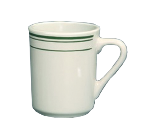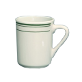 Green Band Mug, 8 oz., 3-1/2" dia. x 3-3/4"H, round, dishwasher, oven and microwave safe, ceramic, American white (sold by case)