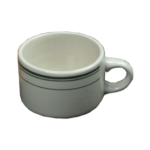 Green Band Cup, 7 oz., 3" dia. x 2-1/2"H, round, stackable, dishwasher, oven and microwave safe, ceramic, American white (sold by case)