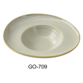 Golden Coast Dessert Plate, 9-1/2"W x 9-1/2"D x 2-3/4"H, 10 oz, porcelain, microwave & dishwasher safe, earthy tone with golden rim (sold by case)