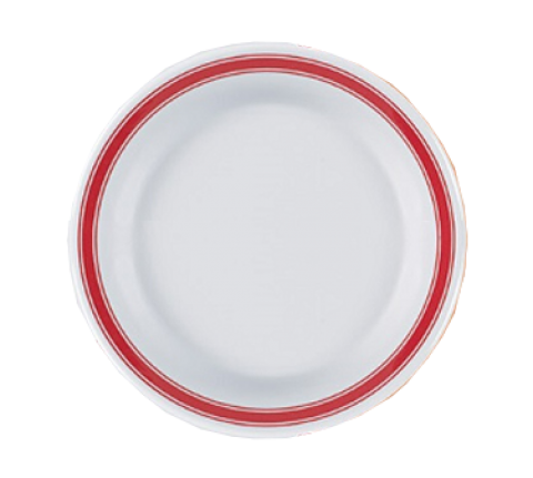 Houston Plate, 7-1/4" dia., round, dishwasher safe, extra heavy weight, melamine, red band/white (sold by case)
