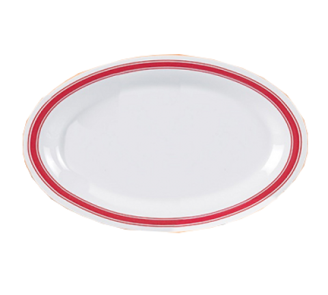 Houston Platter, 9-1/2"L x 7-1/4"W, oval, dishwasher safe, extra heavy weight, melamine, red band/white (sold by case)