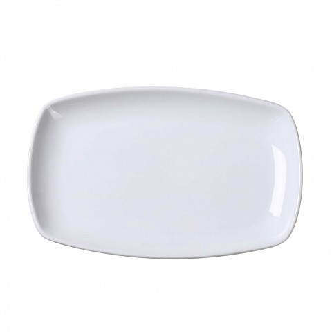 Main Land Plate, 14-1/4"L x 9-1/2"W x 1/4"H, rectangular with rounded corners, dishwasher, oven and microwave safe, porcelain, super white (sold by case)
