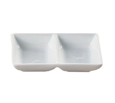 Main Land Divided Tray, 2 oz. each compartment, 5-1/2"L x 2-3/4"W x 1-3/8"H, 2-compartments, rectangular, dishwasher, oven and microwave safe, porcelain, super white (sold by case)