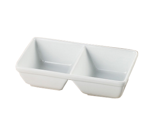 Main Land Divided Tray, 16 oz. each compartment, 10"L x 5-1/2"W x 2-5/8"H, 2-compartments, rectangular, dishwasher, oven and microwave safe, porcelain, super white (sold by case)