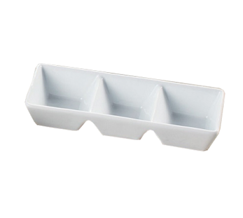 Main Land Divided Tray, 1-1/2 oz. each compartment, 7"L x 2-1/2"W x 1-1/4"H, 3-compartments, rectangular, dishwasher, oven and microwave safe, porcelain, super white (sold by case)