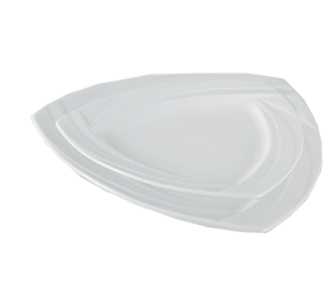 Miami Plate, 10"L x 10"W, triangular, embossed, dishwasher, oven and microwave safe, porcelain, bone white (sold by case)