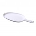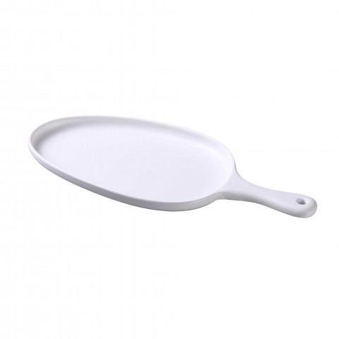 Moderne Pan Plate, 14-1/2"L x 6-1/2"W x 1"H, organic shaped, with handle, dishwasher safe, melamine, matte finish, white (sold by case)