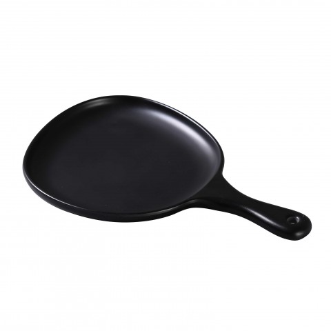 Moderne Pan Plate, 12"L x 8"W x 1"H, organic shaped, with handle, dishwasher safe, melamine, matte finish, black (sold by case)