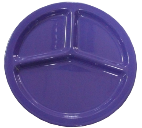 Milestone Compartment Plate, 10-1/4" dia., 3-compartments, round, dishwasher safe, extra heavy duty, melamine, blue, NSF (sold by case)