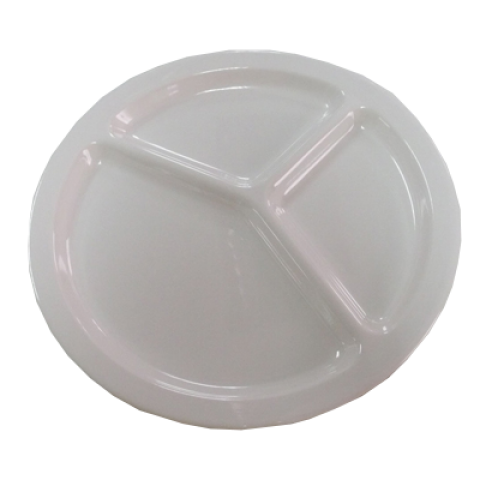 Milestone Compartment Plate, 10" dia., 3-compartments, round, dishwasher safe, extra heavy duty, melamine, ivory, NSF (sold by case)