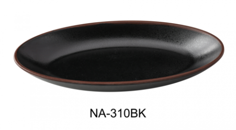 Nature Art Appetizer/Salad Plate, 10-1/2"W x 5-1/4"D x 1-1/2"H, oval, deep, melamine, dishwasher safe, black with brown accent (sold by case)
