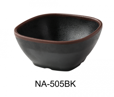 Nature Art Miso Soup Bowl, 4-1/2"W x 4-1/2"D x 2"H, 10 oz, square, melamine, dishwasher safe, black with brown accent (sold by case)