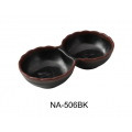Nature Art Condiment Server, 3"W x 5-3/4"D x 1-1/4"H, 4 oz, two-divided, melamine, dishwasher safe, black with brown accent (sold by case)