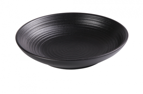 Noble Black Salad Bowl, 20oz., 8"Dia x 1-3/4"H, round, color glazed porcelain, microwave & dishwasher safe, black (sold by case)