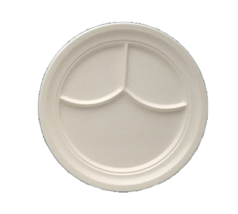 Nu-Classic Compartment Plate, 9-1/2" dia., 3-compartments, round, dishwasher safe, extra heavy duty, melamine, ivory (sold by case)