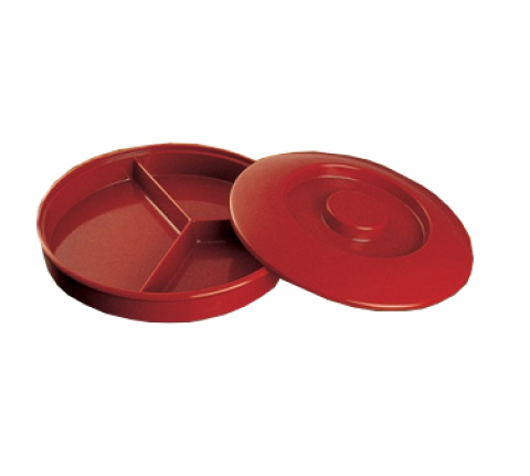 Nessico Divided Server, 8-1/4" dia., 3-compartments, round, deep, with lid, dishwasher safe, heavy weight, melamine, red, NSF (sold by case)