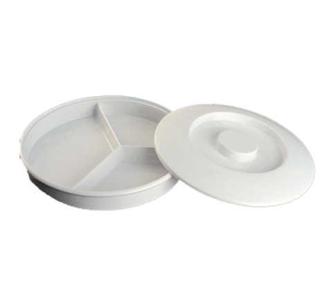 Nessico Divided Server, 8-1/4" dia., 3-compartments, round, deep, with lid, dishwasher safe, heavy weight, melamine, white, NSF (sold by case)