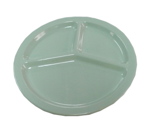 Nessico Compartment Plate, 10" dia., 3-compartments, round, dishwasher safe, heavy weight, melamine, green, NSF (sold by case)