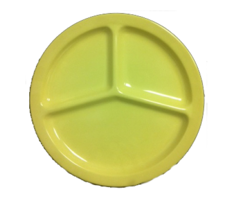 Nessico Compartment Plate, 10" dia., 3-compartments, round, dishwasher safe, heavy weight, melamine, yellow, NSF (sold by case)