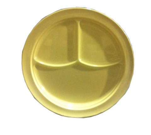 Nessico Compartment Plate, 10-1/4" dia., 3-compartments, round, dishwasher safe, heavy weight, melamine, yellow, NSF (sold by case)