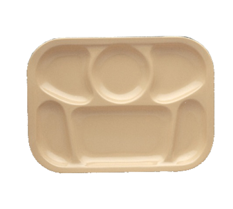 Nessico Compartment Platter, 13"L x 9-1/2"W, 6-compartments, rectangular, dishwasher safe, heavy weight, melamine, tan, NSF (sold by case)