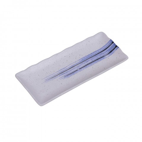Ocean Sushi Plate, 11-1/2"L x 5-1/2"W, rectangular, glazed, dishwasher, oven and microwave safe, porcelain, white with blue design (sold by case)