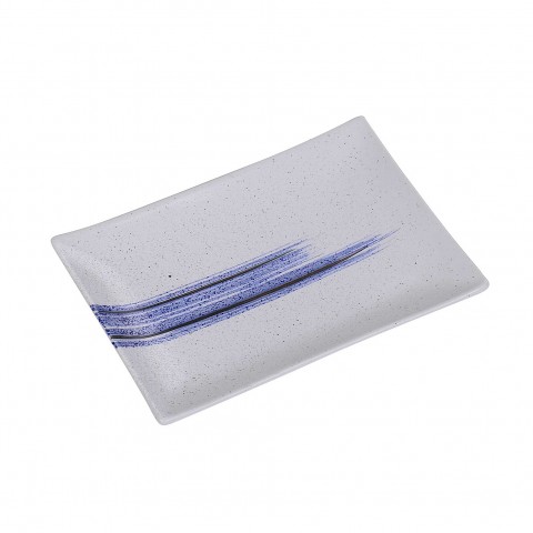 Ocean Plate, 12"L x 8-1/4"W x 1-1/2"H, rectangular, glazed, dishwasher, oven and microwave safe, porcelain, white with blue design (sold by case)